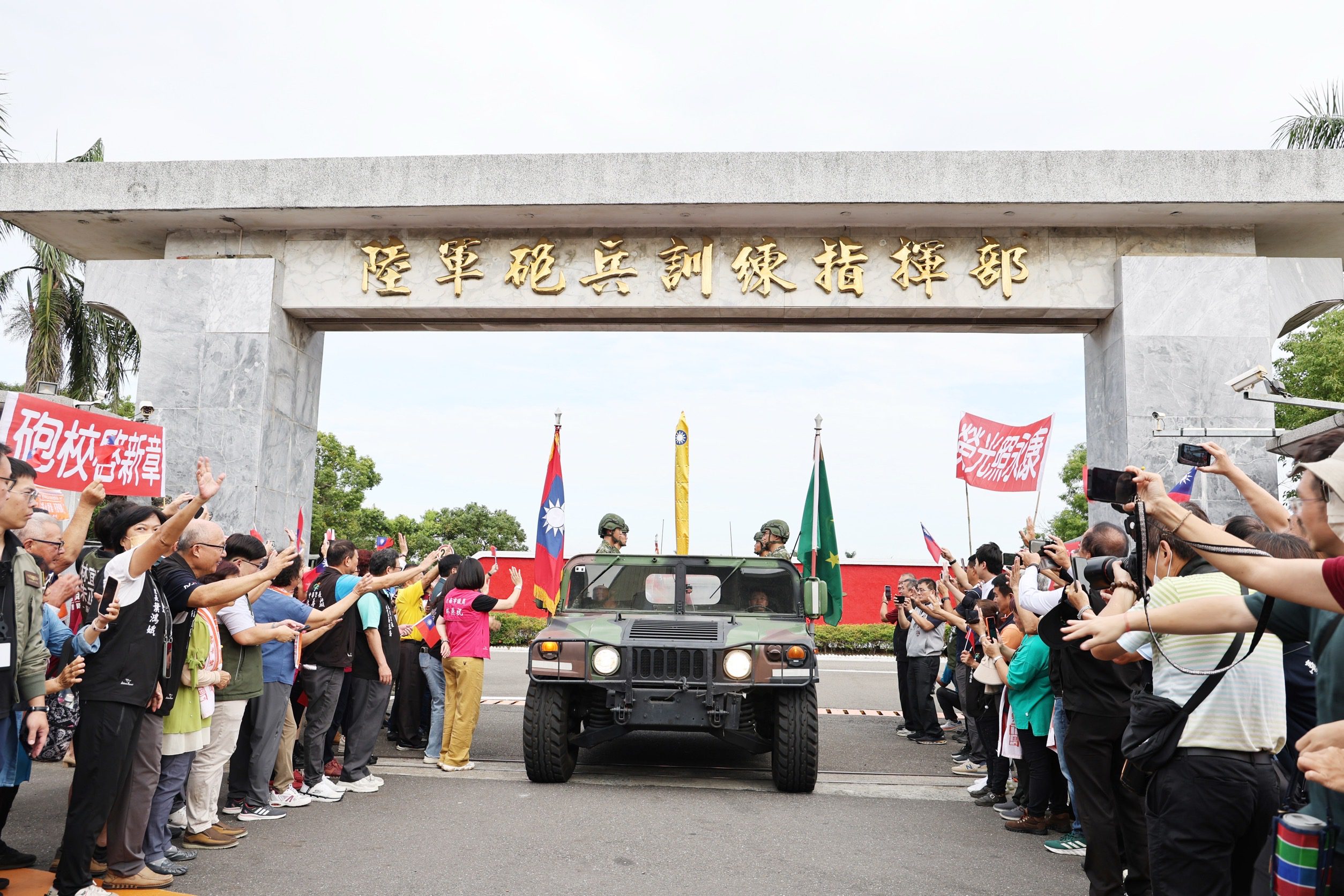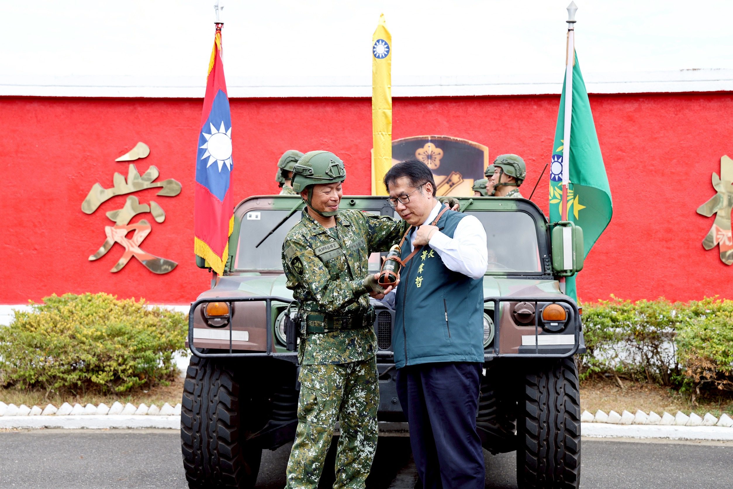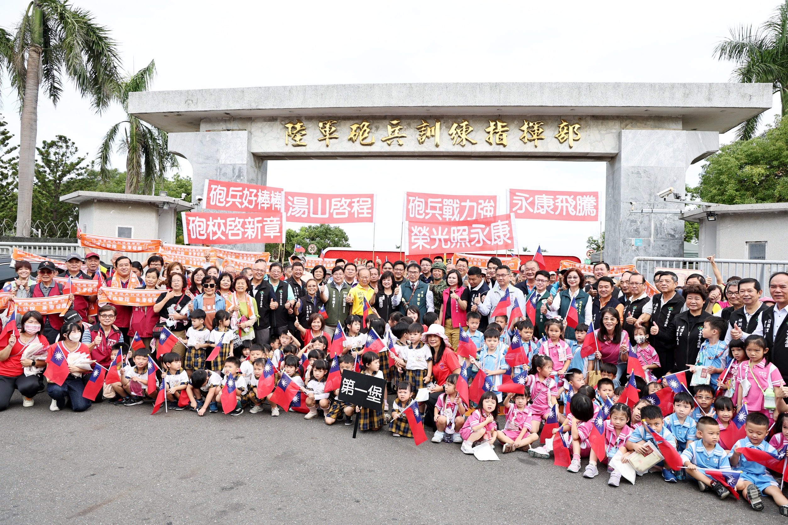 為感念砲校長年駐防地方、守護鄉里的深厚情誼,台南市政府特別舉辦歡送與祝福活動,由市長黃偉哲代表全體市民向官兵表達誠摯謝意。活動中,砲校指揮官李少將致贈一只「砲彈造型水壺」給黃市長,象徵市府肩負關廟新營區建設及永康舊址開發的重任;黃偉哲則回贈一頂野戰帽,感謝砲校多年守護國土、護佑地方,並祝福部隊遷駐關廟湯山營區一切順利、平安如意。
