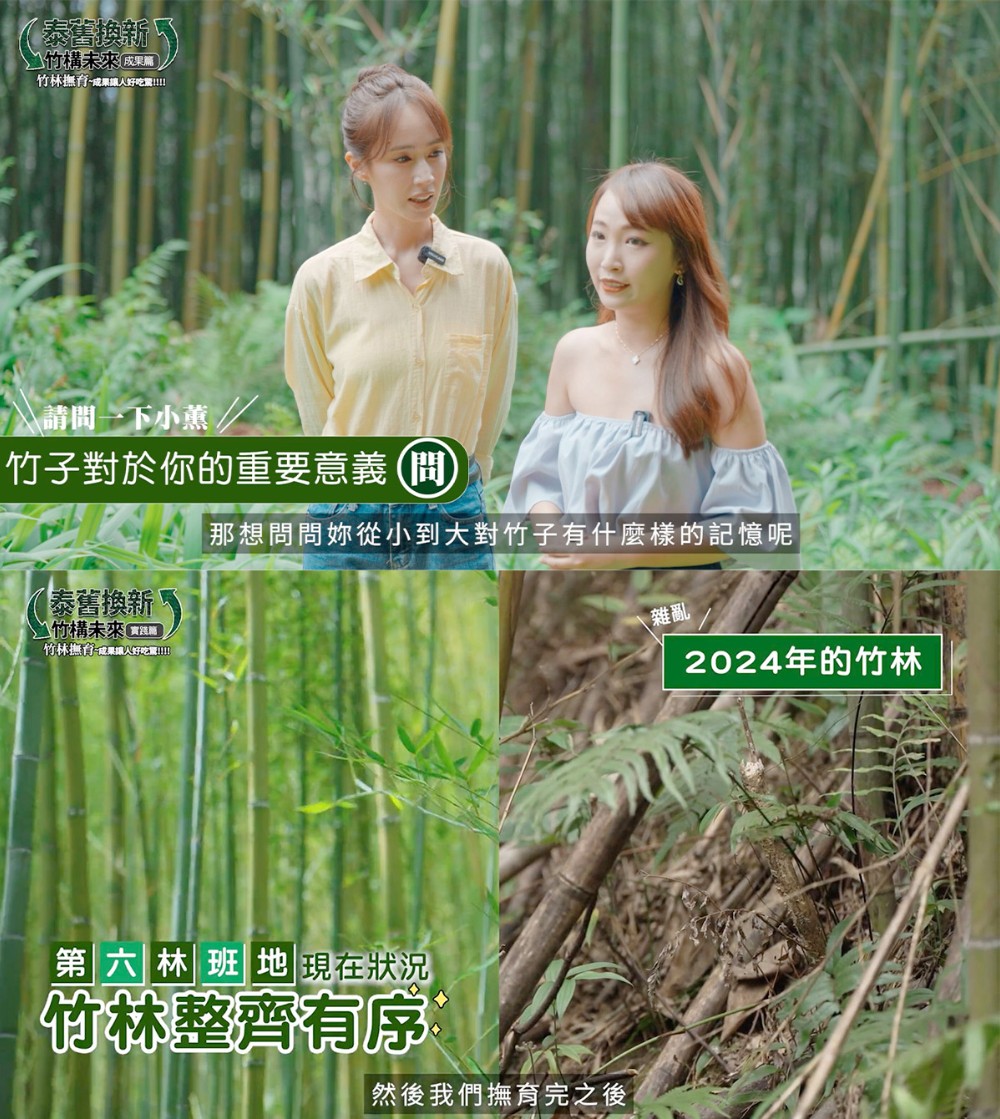 桃園復興區大溪第六林班地,一片翠綠竹林隨風搖曳,這裡是自然生態的一部分,更是中華電信「泰舊換新 竹構未來」計畫的重要舞台。這項涵蓋33.7公頃的四年計畫,不僅守護竹林,也讓青年有機會返鄉就業,部落文化與永續產業能同時生根。主持人小孟邀請泰雅族藝人小薰一同見證撫育成果,小薰回憶父親曾搭建竹屋、製作口簧琴,母親則常煮竹筒飯去販售,從竹簍到竹器,竹子貫穿了她的成長歲月,更代表了泰雅族人世代相傳的智慧。綽號阿山哥的友順竹業負責人林志仁也笑說:「有泰雅族人的地方,就有台灣的桂竹。」