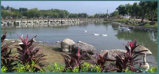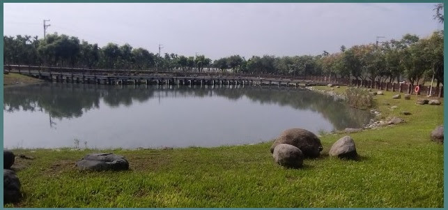 金鐘-4▲湖面縮的大小又浅不成[湖](湖變成池)  池邊&池中所擺石頭太多且欠藝術 破壞景觀