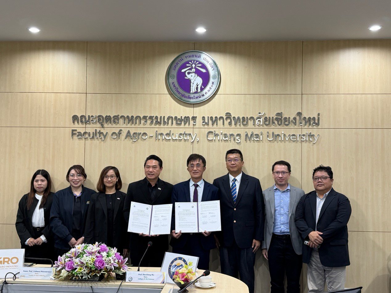國立嘉義大學持續拓展國際合作版圖,10月27日至29日由生命科學院院長吳思敬、食品科學系主任呂英震、許志宇老師、國際合作組組長陳宣汶率團前往泰國清邁大學(Chiang Mai University, CMU)農業工程學院(Faculty of Agro-Industry),雙方正式簽署學術合作備忘錄(MOU),共同推動食品科技與農業創新研究。此次合作象徵兩校建立長期夥伴關係,未來將展開師生交流、聯合研究與產學合作計畫,深化國際學術鏈結。