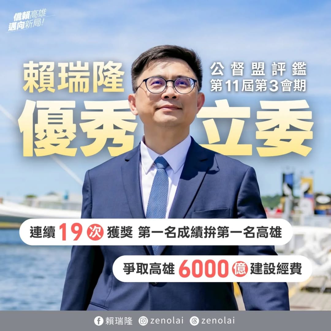 賴瑞隆曾擔任高雄市新聞局、海洋局兩個局處首長,並在三屆立委任期內,連續19次獲得公督盟評鑑優秀立委,熟悉中央與地方的行政節奏與政策協調。他強調,陳其邁市長在立委期間,也和自己一樣獲得多次公督盟評鑑優秀立委,「優秀立委成為高雄優秀市長,自己也會延續該精神,認真做一位優秀市長!」