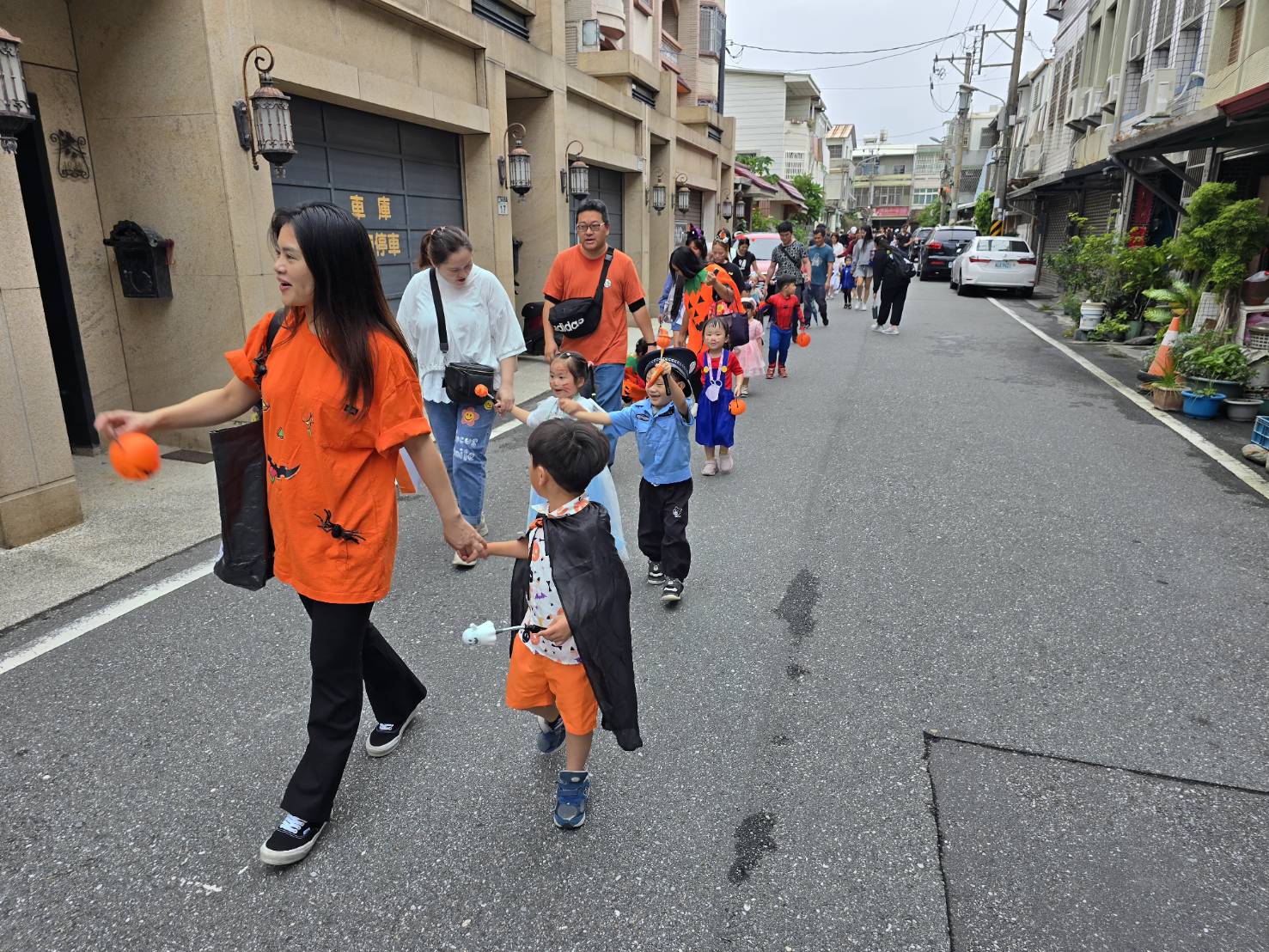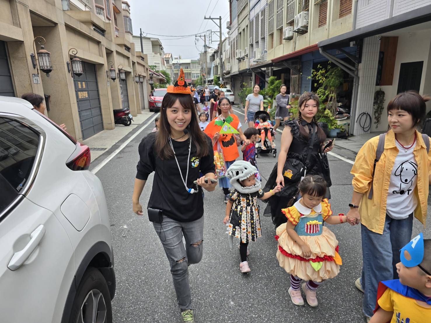 孩子們身著各種鬼怪造型的萬聖節服裝,道具五花八門,大部分是家長帶著子女DIY製作,死神、斗篷小惡魔、吸血鬼等,不一而足;有的則採購親子南瓜裝、恐龍裝、殭屍裝等,琳瑯滿目;沿途高喊「Trick or Treat!」(不給糖就搗蛋),獲得社區熱情回應與滿滿糖果,洋溢濃濃的節慶氣氛。