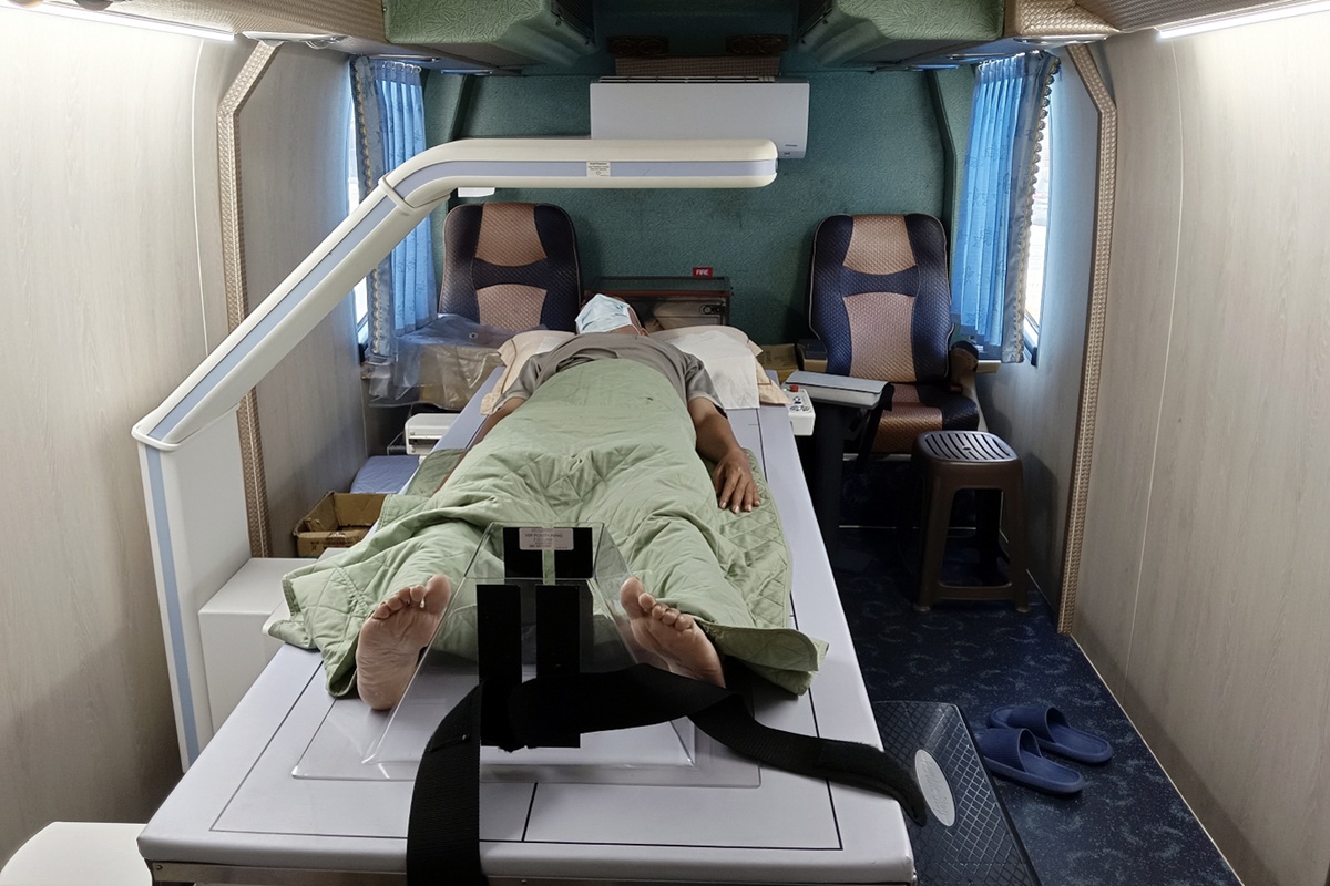 ▲本次活動提供DXA行動檢查車服務,讓民眾現場進行骨密度檢測,守護骨骼健康。(圖/彰基提供)
