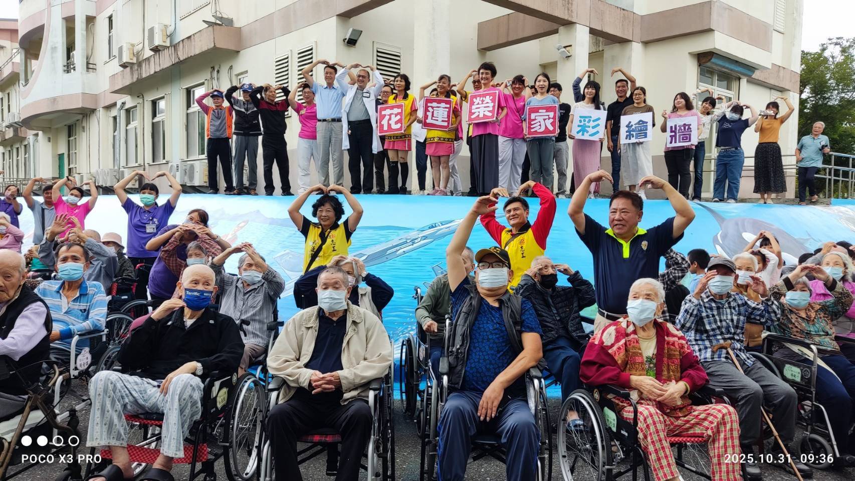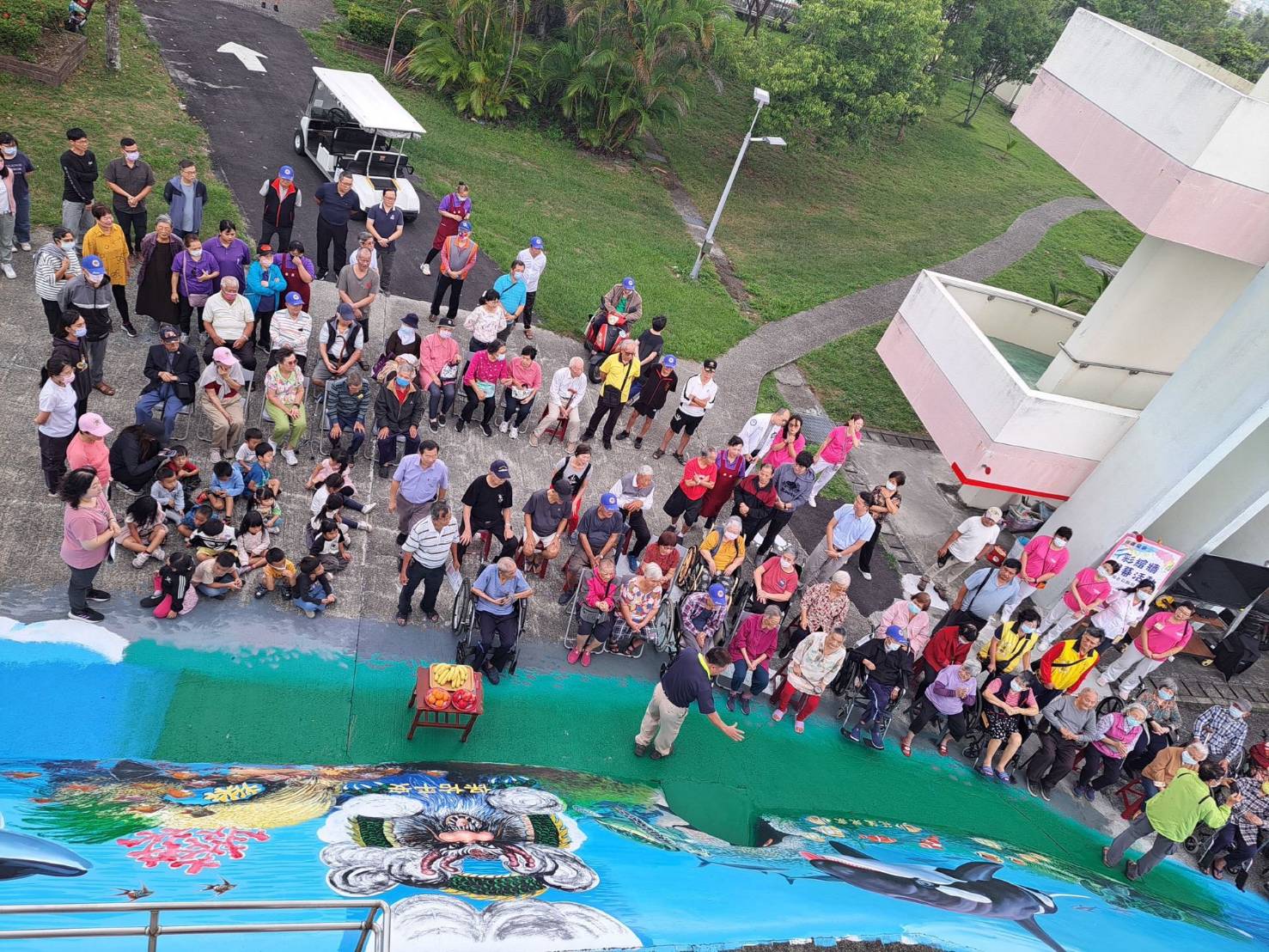 ▲榮家長幼攜手揭幕,讓新彩繪牆面現場,氣氛熱鬧不失溫馨。(圖/花蓮榮家提供,下同)