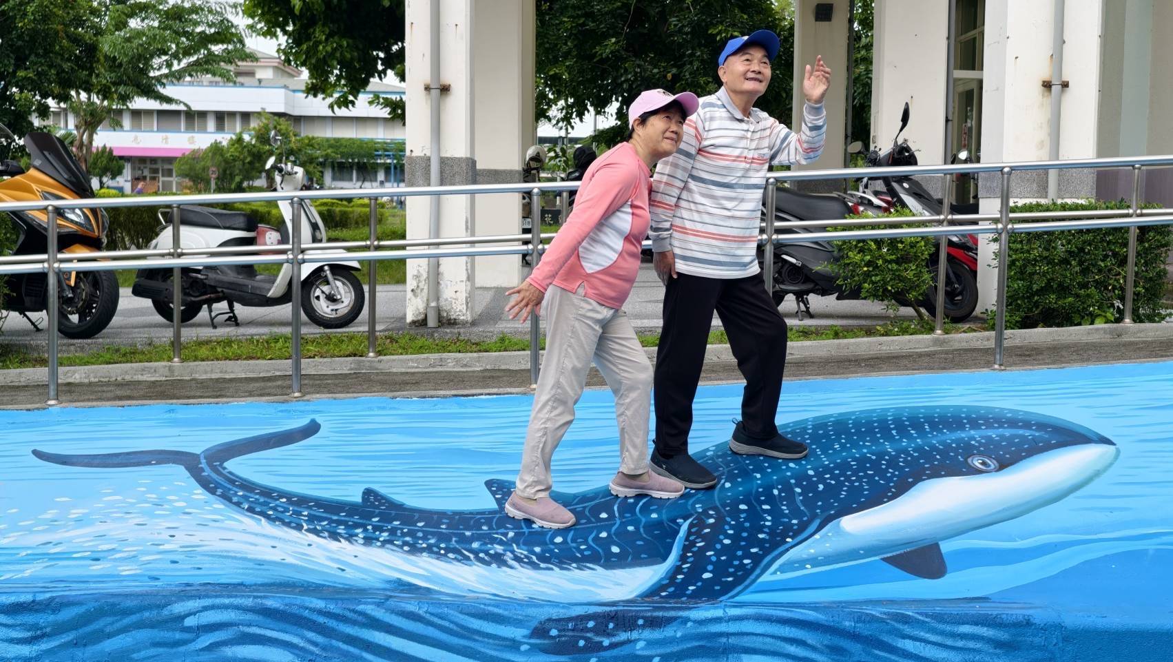 此外,彩繪牆融合AI動畫創作技術,讓傳統彩繪注入數位新生命,只要將所拍攝的照片置入動畫相關軟體,就能創建出與海豚互動、艦艇在海上行駛、戰機起飛環繞的動畫畫面,吸睛又有趣,成為家區的新地標。
