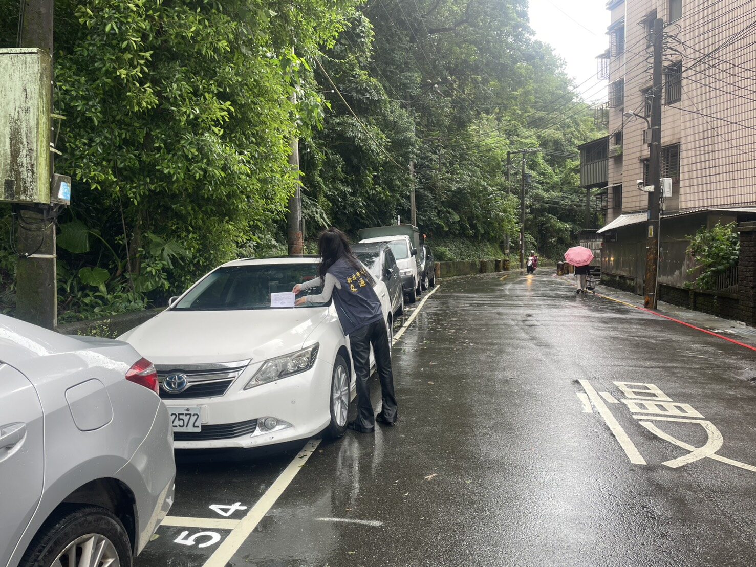 ▲汐止區招商街路邊停車格夾單宣導。(圖/新北市交通局 提供)