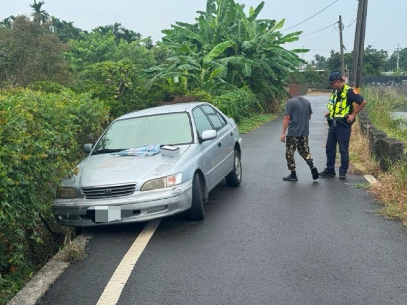 屏東縣政府警察局內埔分內埔所副所長潘建銘、警員林彥丞,日前早上9點多巡邏中接獲110報案,在內埔鄉埤頭巷有民眾的車子掉入水溝,請警方到場協助。