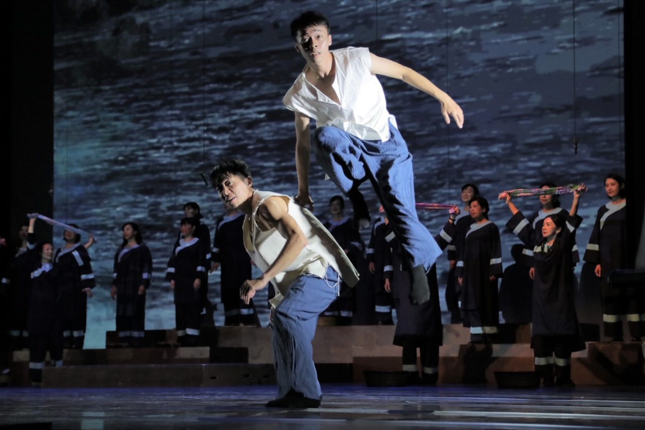 ▲《臺客傳奇》中的「渡臺悲歌」,與海浪搏鬥抓蟹。(圖/ 台灣客家山歌團提供,下同)