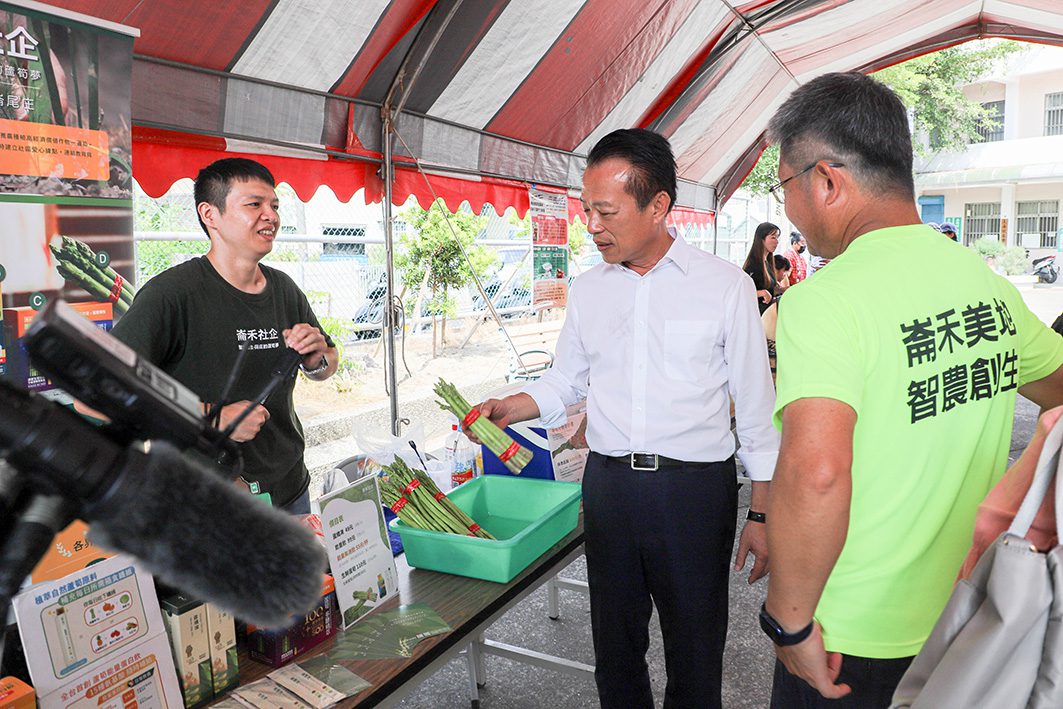 翁章梁說,陳梧桐是溪口人,原本在高雄經商,後來回家鄉創立社會企業,目前主要推廣種植蘆筍,現在蘆筍價格非常好,透過高經濟作物改善農民收入,以這點為基礎,陳梧桐也開始推廣在地文化,當更多人回到家鄉進行反思與行動,嘉義縣一定會變得更好。