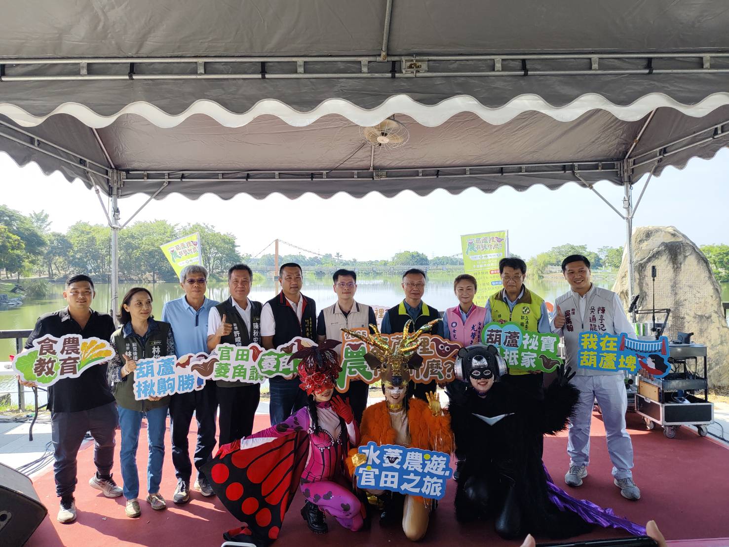本次活動以「葫蘆埤自然生態公園」為起點,展開一整日的田野探索。從早上的限定市集《農在玩什麼》互動體驗,到午後造訪「台南鴨莊」、「邨田森態農莊」、「菱角和」、「幸福菱角」等多個特色景點,不僅有菱角採收、茶點品茗,也讓參訪媒體實地感受在地青農的用心與創意。
