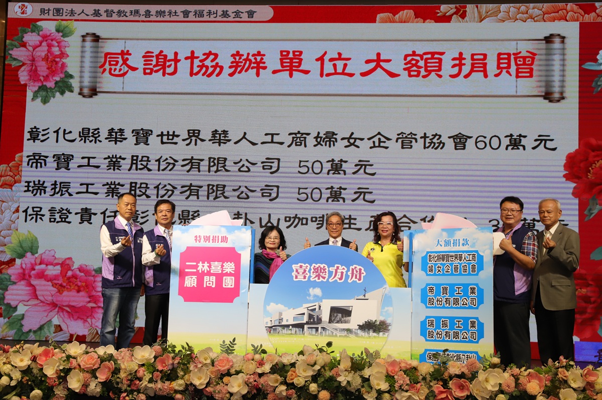 此次活動共有20個合辦單位、28個協辦單位及61個贊助單位共同參與,展現凝聚善意的強大力量。其中,二林喜樂顧問團在陳志池創團長的強力號召下,顧問團捐助金額達510萬元,另也感謝在地社團也踴躍認桌與捐款,展現彰化在地愛的實力。