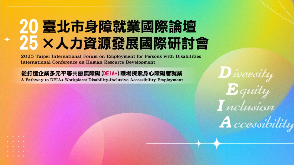 臺北市政府長期致力於打造多元、平等、共融、可及(DEIA)的無障礙城市環境,而職場正是實現這些價值的關鍵場域。為深化企業對身心障礙就業議題的理解與實踐,舉辦「2025年臺北市身障就業國際論壇 × 人力資源發展國際研討會」,廣邀國內外專家與產官學界共商對策,推動DEIA+作為企業發展的核心理念。