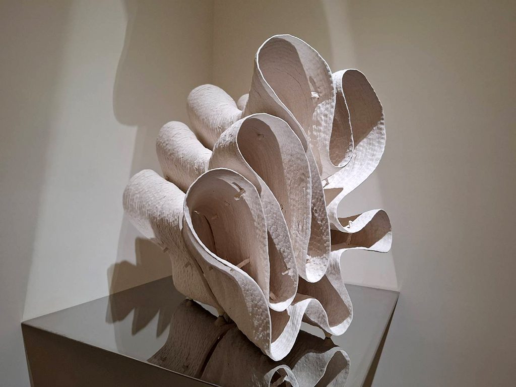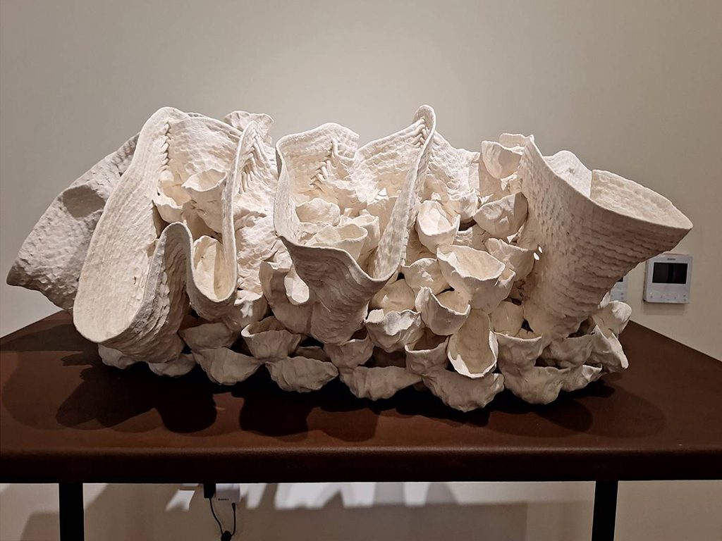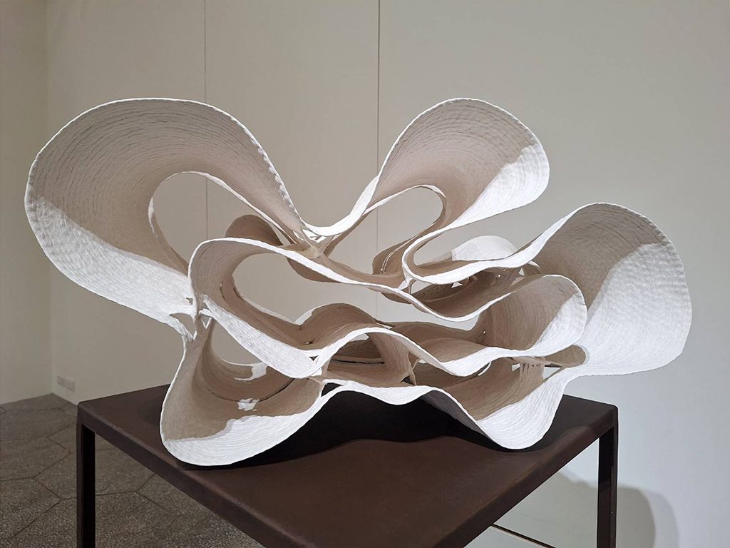 43歲那年,徐永旭毅然決定全職創作,將生命完全交付給藝術。自此,他以信仰般的堅定投入創作,不倚賴任何機械輔助,僅憑雙手推疊、塑形極大極薄的陶作品,讓作品在時間的淬鍊中孕育出厚度與靜光。