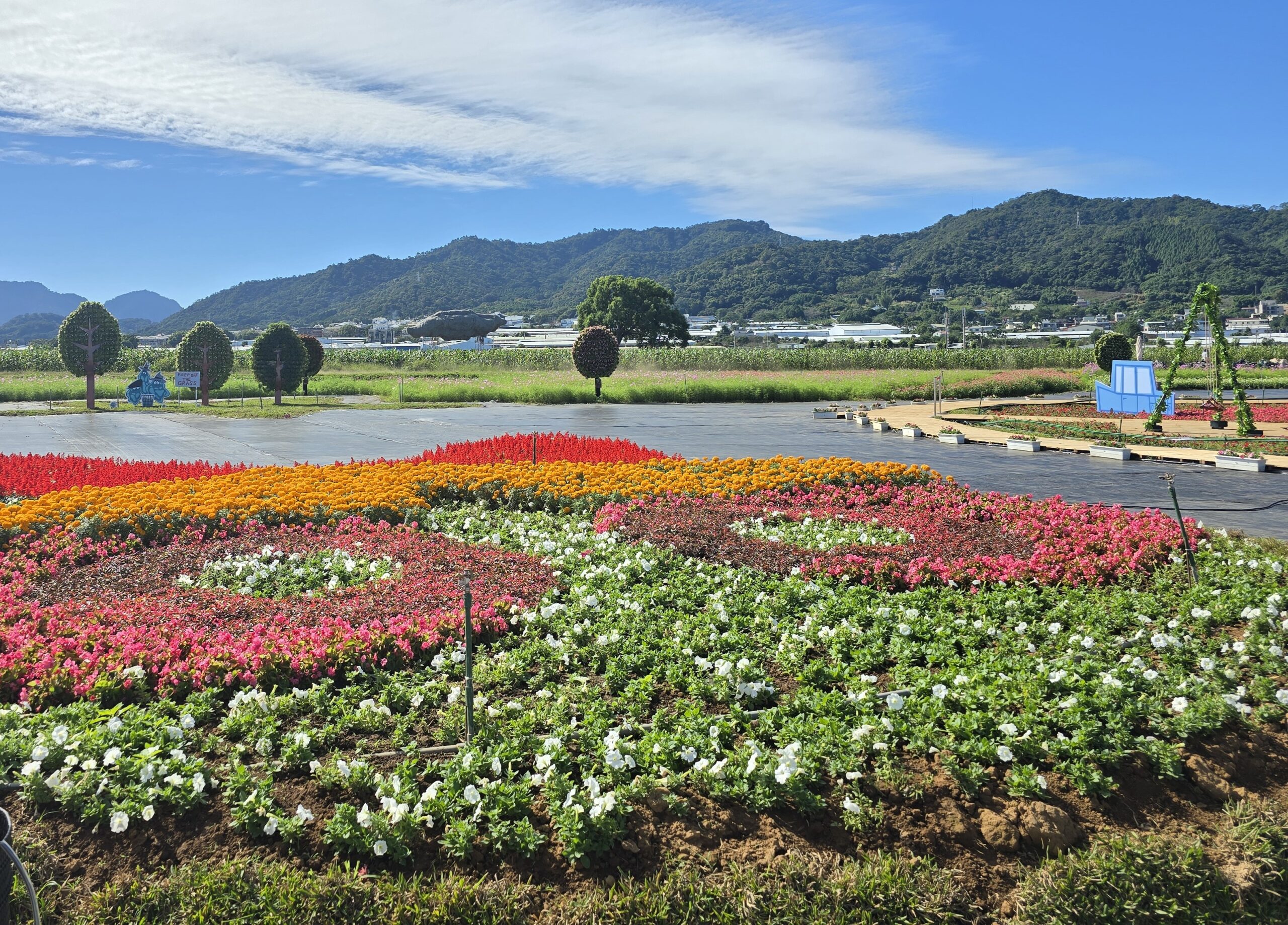 觀旅局陳美秀局長指出,除了主花毯,現場更呈現了多個代表場景,包含飛天小女警的家、市政廳,以及動畫中熟悉的角落。遊客不僅能遇見花花、泡泡與毛毛立體裝置,也可能與尤教授、小鎮村市長、會說話的狗等經典角色,以及粗暴小子、阿米巴幫、壞死幫派、「他」等反派角色立牌「不期而遇」,處處驚喜。除了各項裝置外,現場同步設置飛天小女警限定主題館,販售超過200種周邊商品及在地農特產,包括小農水果禮盒、DIY香菇太空包、柑橘果凍等,帶動地方產業與觀光經濟。