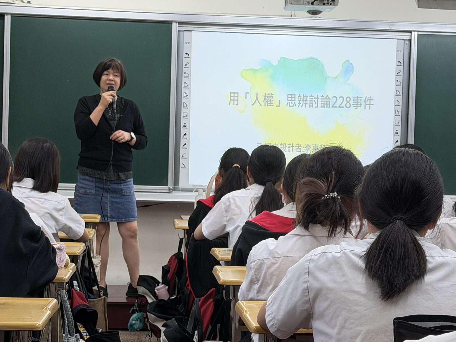 【記者范家豪/台北報導】 由臺北市文化局與台北二二八紀念館主辦,財團法人台北市228提案,臺北市國民教育輔導團人權教育議題輔導小組及中華國際人權促進會協辦之2025年「深耕校園 人權教育巡迴展」近日在靜修中學成功舉辦,主題為「人權共融,責任同行」。為響應人權教育向下扎根的理念,中華國際人權促進會執行長李惠芬親自前往,為學生們帶來一場深具啟發性的人權教育工作坊。這場活動是巡迴展的重要一站,旨在引導學生從歷史思辨中認識人權,並體認到尊重人權的重要性。