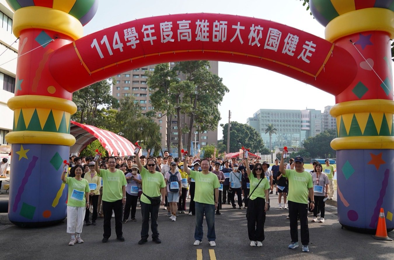 【記者蘇莉湘 / 高雄報導】 國立高雄師範大學於今(7)日假和平校區運動場,舉辦71周年校慶慶祝大會暨運動會。今年主視覺為「71 齊一協力」,開幕式由校長王政彥主持,邀請美和科大校長王建臺、屏東大學教務長歐陽彥晶、全國校友總會首席顧問蔡國彬、校務顧問吳清亮、黃新郡及民意代表與校友等親臨會場,場面溫馨、活潑、熱鬧。音樂系管樂團在王戰主任指揮下,演奏了兩首樂曲「Perhaps Love」及「貓的報恩」,表達全校師生對高師大的凝聚力與向心力,並藉由這兩首溫馨、充滿活力的樂曲,祝賀高師大生日快樂。