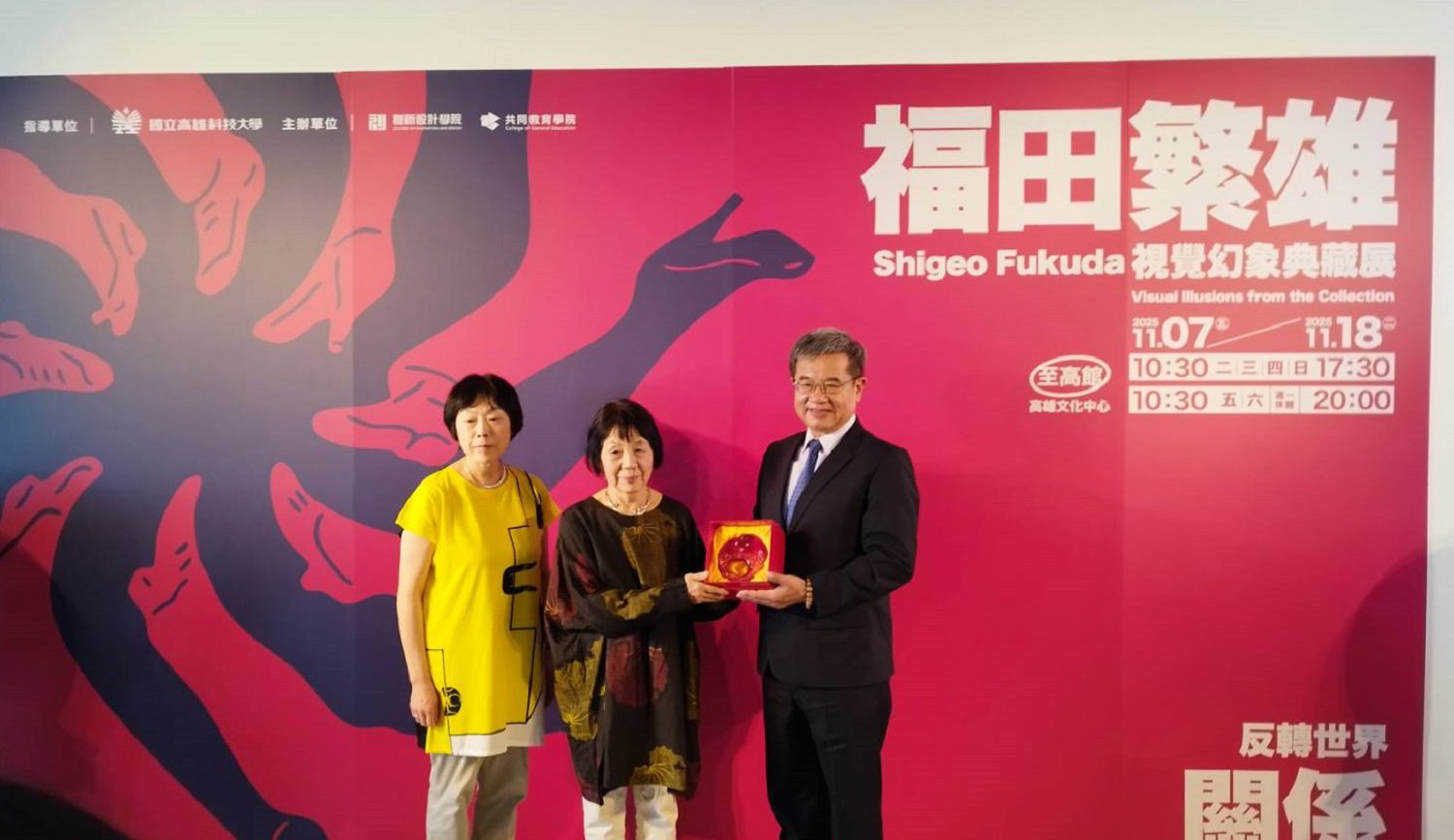 最令現場動容的,是福田繁雄的夫人與女兒特別自日本飛抵高雄,親自出席開幕典禮。福田夫人致詞時感性表示,能看見丈夫作品在台灣完整保存、重新展出,是她這趟最深刻的感動,「感謝高科大的珍視與用心,讓福田精神能在台灣持續發光。」