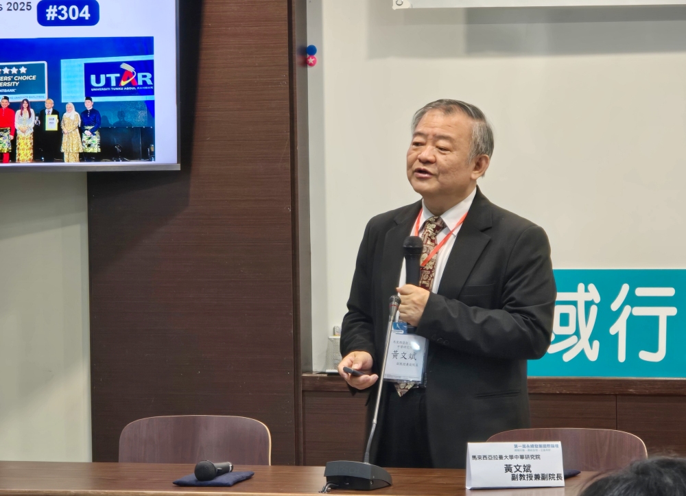 馬來西亞拉曼大學中華研究學院副院長黃文斌分享「文化永續與地方創生」案例,以金寶縣為例,說明如何透過文化旅遊與教育合作,活化歷史場域、創造就業並帶動地方再生,展現文化永續的在地實踐。