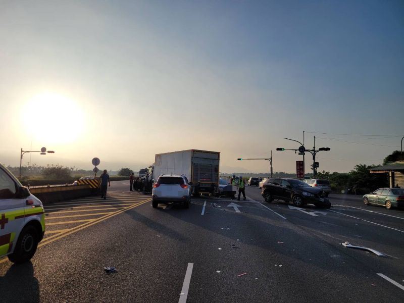 【記者何勁陞/枋寮報導】 屏東縣政府警察局枋寮分局日前清晨6時45分接獲通報,指稱在枋寮鄉台一線東角路口發生交通事故。警方立即派員趕赴現場處理,初步調查為69年次汪姓男子駕駛大貨車,由北往南直行行駛,疑因陽光反射導致視線不佳,不慎追撞前方五部自小客車。