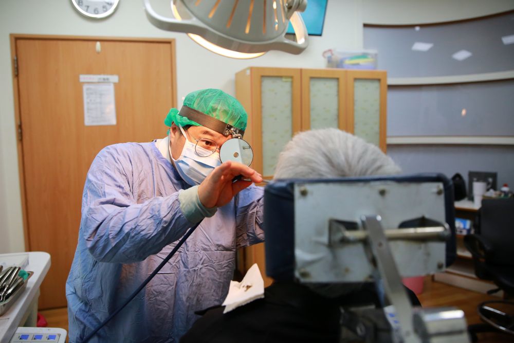 ▲阿琴姊至耳鼻喉科回診,醫師周昱甫醫師細心取出微創傷口的小結痂。