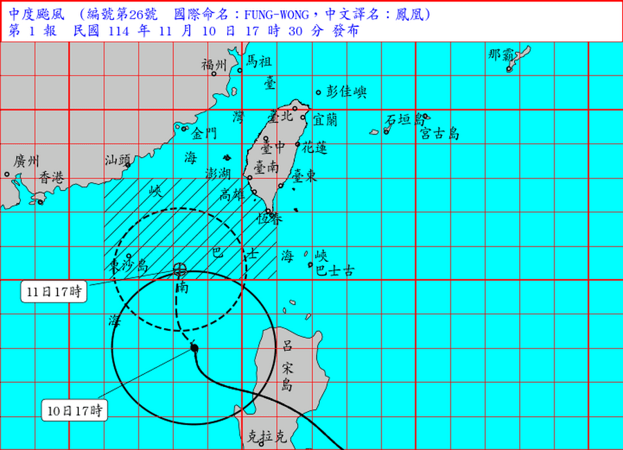 鳳凰颱風來勢洶洶,全臺各地天氣今天11月10日起,已明顯受到影響,明天停班停課情形如下: