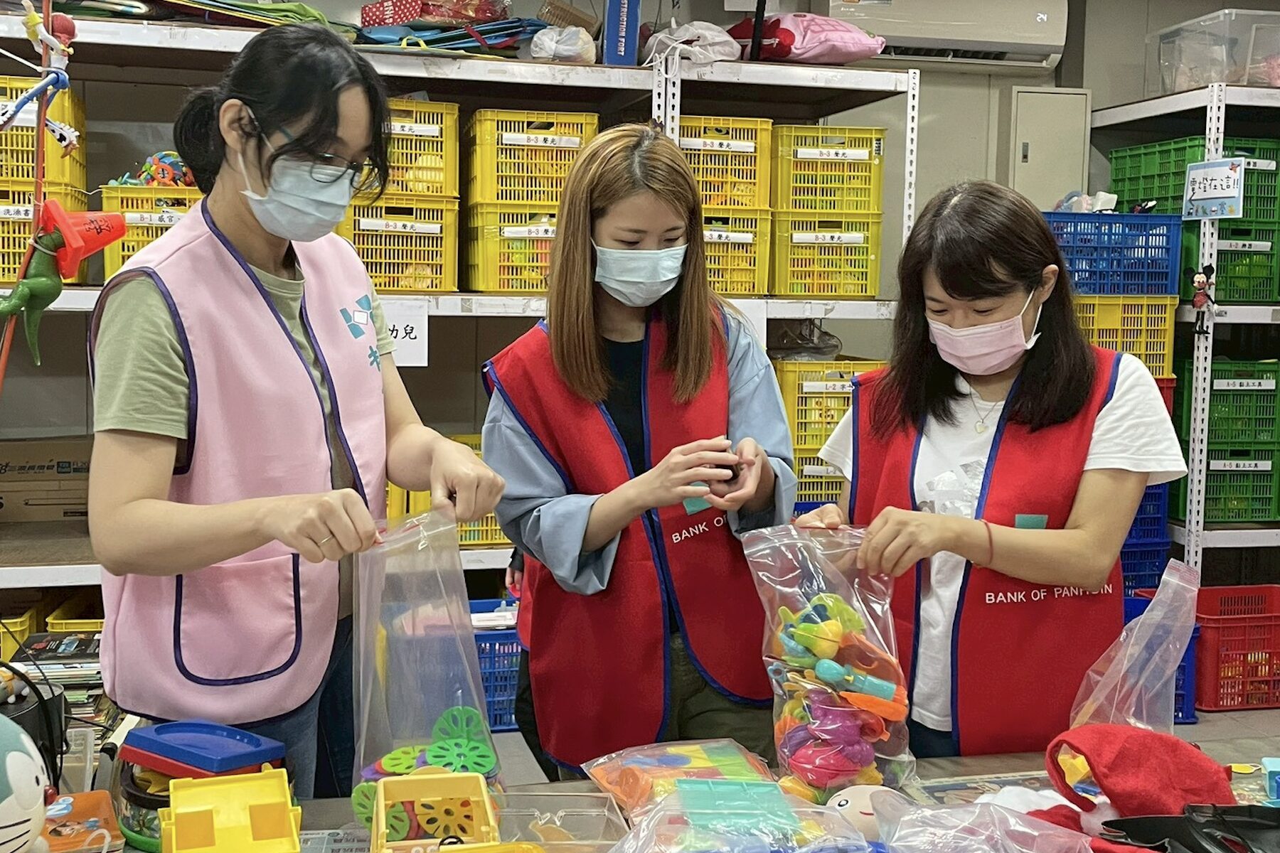 ▲青少年志工將二手玩具分類、清潔、檢修、歸位。(圖/新北市社會局 提供)