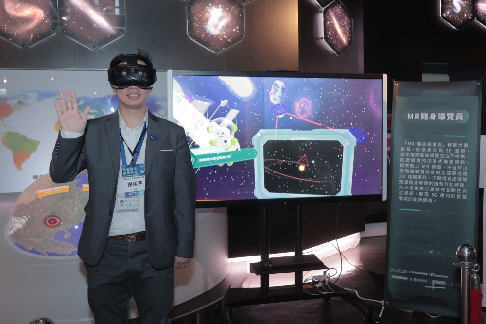 ▲MR隨身導覽員提供虛實展品與豐富的天文知識的沉浸式導覽。(圖/張辰卿攝)