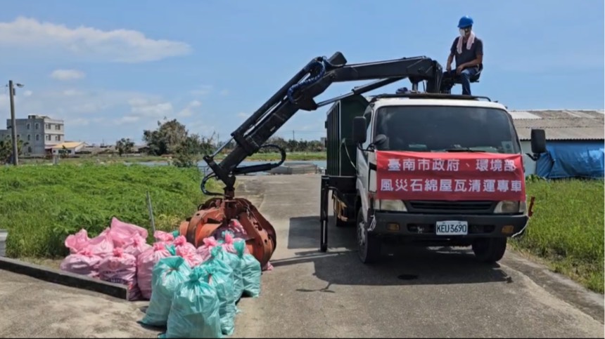 因此,石綿成為災後清運的優先項目。環保局啟動專案,受災戶只要拍照、領取太空包裝袋登記,就能在三日內派車清運,並依標準作業流程辦理。