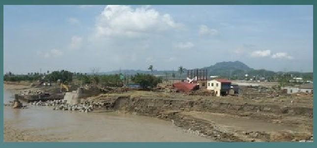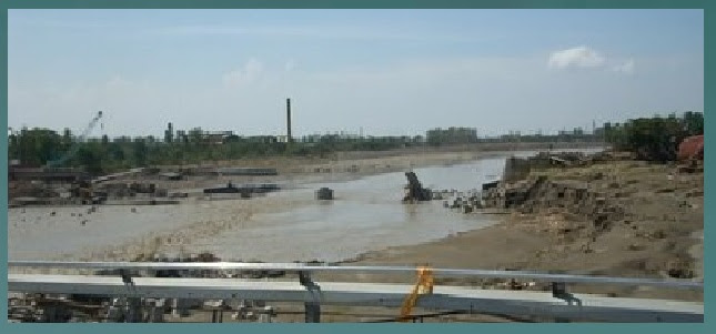9溪埔寮地區景象-36▲2009(98)年八八水災荖濃溪兇湧可怕介大水大浪:沖割良田滂pongˊ走兩三甲(改善前)(誤導大陸廣州市向美濃高美護專&吉東國小救災)(2009/8/9  09:00)。