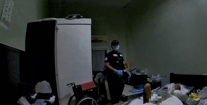 ▼經確認無急迫危險後,警消人員才離開現場,老翁家屬對於警消幫忙不斷道謝。(圖/屏東縣政府警察局內埔分局)