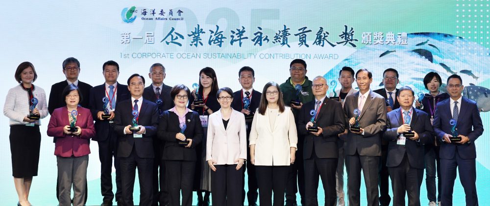 海洋委員會12日於臺北101舉辦首屆「企業海洋永續貢獻獎」頒獎典禮,公開的企業。此次共有17家企業獲獎,展現臺灣企業在推動永續發展上的堅定力量與承諾。典禮由副總統蕭美琴親自頒獎,與得獎企業代表及現場貴賓共同見證榮耀時刻,象徵政府與企業攜手守護海洋的決心。
