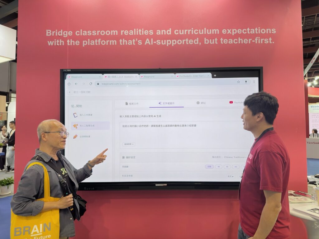 在眾多展出亮點中,由謙懿科技總代理的旗艦產品 Wayground AI 教學平台 成為全場焦點。以「AI 讓理想課堂即時實現」為主軸,Wayground 展示其直覺化操作介面與高效能 AI 引擎,吸引大量教育工作者駐足體驗。教師僅需輸入教學主題或課程目標,即可於數十秒內自動生成教材,內容涵蓋課程架構、練習題與延伸討論,大幅提升教學準備效率。