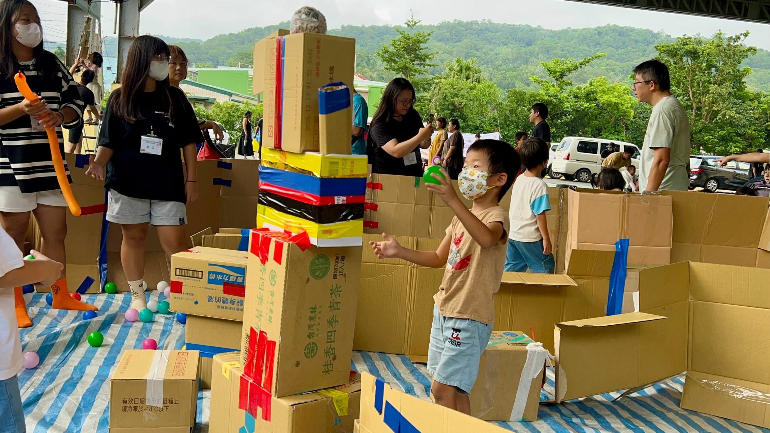 滿州鄉位於恆春半島,是縣內相對偏遠的地區,公共設施與兒童活動空間較少。為了讓滿州地區的孩子也能享受到遊戲平權,讓家長在陪伴中發現與孩子互動的樂趣,此次活動選在日日旅海民宿前大草坪,結合自然素材與趣味挑戰,規劃六大遊戲主題,「草坪闖關」──跳過路障與走平衡木挑戰鍛鍊大肌肉發展與協調力,讓孩子玩出自信與成就感;「用風吹泡泡」──運用恆春半島特有的落山風,吹出巨型泡泡;「風的忍者」──用紙張、繩子與想像力打造專屬忍者裝備,摺出風車與手裡劍,激發創造力;「草地創意競走」──在草地上使用布袋變成袋鼠,或是用紙箱創作出自己的交通工具,在草地上盡情釋放體力;「寶寶球池區」──為年幼孩童設置安全軟球池,自由探索玩樂;以及「最強防風塔」──以冰棒棍、繩子、黏土等素材,打造能抵抗強風的防風塔,啟發孩子的邏輯與科學思維。