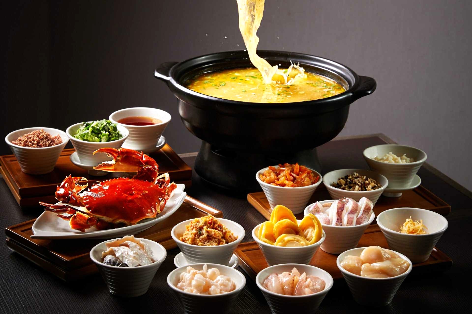 天香樓擅長大閘蟹料理,每年皆須等到立冬、小雪、大雪到冬至時節,大閘蟹膏黃最美的節氣,方推出蟹宴以饗饕客,就是希望能把關螃蟹品質。今年路凱源主廚以「鮮」、「巧」、「香」、「濃」四種食趣的元素出發,在經典與創新中打造蟹宴料理的新意。禿黃油撈飯承宋人風雅,使用五隻以上大閘蟹的純蟹黃與蟹膏、不取蟹肉,佐豬油細火烹製,一碗盡藏數蟹精華,香濃鮮潤、極盡奢華。天香鮮蟹菜飯二吃結合江南家常與宴席巧思,先以蟹粉拌飯、再以湯煨成粥,層次豐富、香氣遞進;船家蟹骨醬年糕則融入蟹骨精華與特製XO醬,濃厚醬香包裹年糕柔韌,重現江南舟家風味。秘製花雕凍蟹嚴選飽滿沙母,以花雕酒蒸熟後冰鎮,肉質清甜帶酒香。帝王蟹麻婆魚豆腐是融合川、杭技法,魚圓與豆腐共襯麻婆醬香,帝王蟹肉鮮甜濃郁,為傳統風味注入新意。桂花銀芽炒蟹鬆借鏡江南名菜「桂花炒蟹」,以蛋液快炒成桂花般金黃細絲,融入香菇、銀芽與沙母蟹肉乾炒,香氣層層交織。