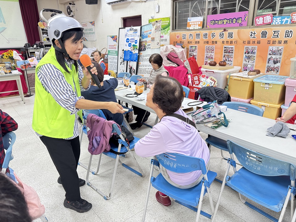 交安宣講分別在暖暖區碇內社區、仁愛區朝棟裡裡民活動中心、暖暖區中興社區發展協會、中正區新豐里活動中心、暖暖區碇祥里里民會堂…等地舉行,每場吸引15至35人次,路老師以“看得見、行走安心”為主題,特別針對銀髮族在交通上常見的風險,如過馬路速度較慢、行走時未靠邊或未戴反光配件,以及未注意「車輛內輪差」及「轉彎視線死角」等問題,透過互動式教學和生動的案例分享,將複雜的交通規則轉化為長者容易理解和記憶的知識,並強調「小綠人閃爍時,絕不搶快」,鼓勵長者使用設有行人專用時相的路口,同時提醒夜間外出務必穿著亮色衣物或佩戴反光飾品,確保自身可視性。