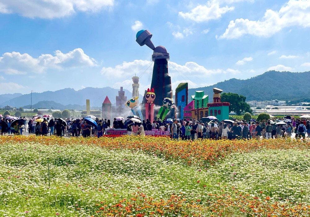 ▲主花毯花海繽紛綻放,現場裝置也驚喜呈現飛天小女警經典場景。 (圖/臺中市政府觀光旅遊局提供)
