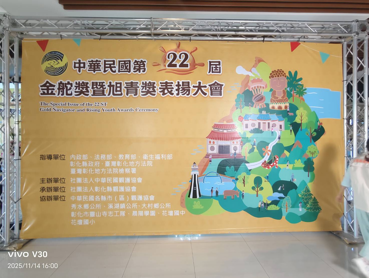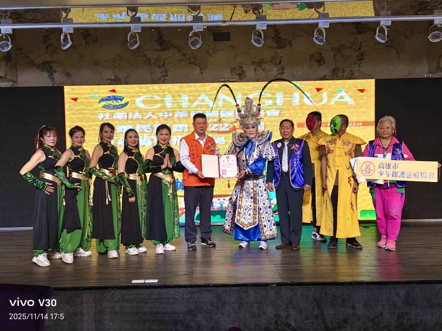 在彰化舉行的第22 屆金舵獎暨旭青獎頒獎典禮上,高雄少年觀護慈愛協會旗下兩支志工團隊驚豔登場。綺莉藝術表演團以優雅舞姿,展現團隊古典與柔美力量;東隆宮傳統國術舞蹈團則以拳腳與身法融合傳統武藝,展現剛毅與傳承。這兩支表演隊伍皆由協會志工組成,他們投入公益之外,也透過藝術與文化,傳遞生命過來人的經驗與信念。典禮現場掌聲雷動,來賓頻頻稱讚:他們不只是青年,而是「文化使者」、「生命傳播者」。協會創會長江森煇分享,在南下典禮之前,他特別與隊員們溝通:參與不只是拿獎,而是用舞蹈與功夫說公益之心,用身體與力量書寫青春與服務。他說,此行北上不只為了參加典禮,更是結合觀護教育、矯正實務與反毒體驗的一場綜合訓練。「我們要讓志工不只是服務者,更是未來青少年的守護者、生命的陪伴者。」