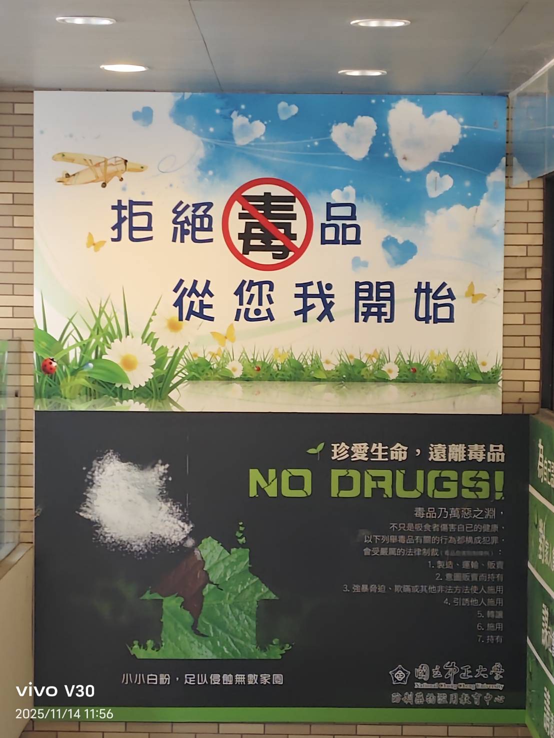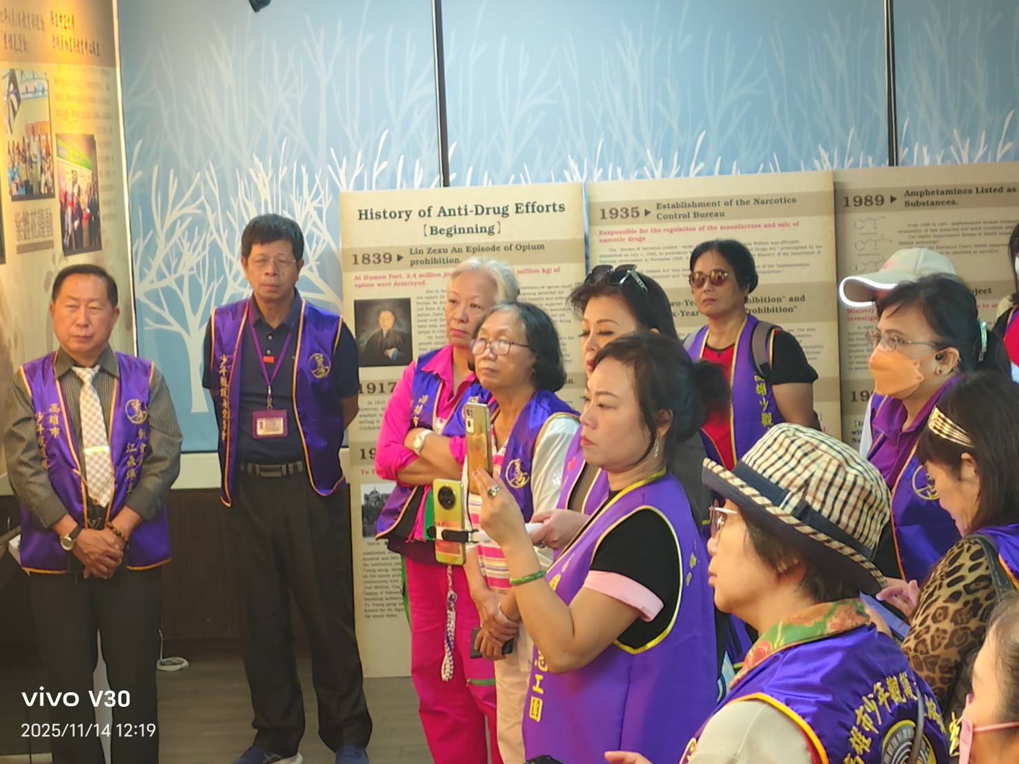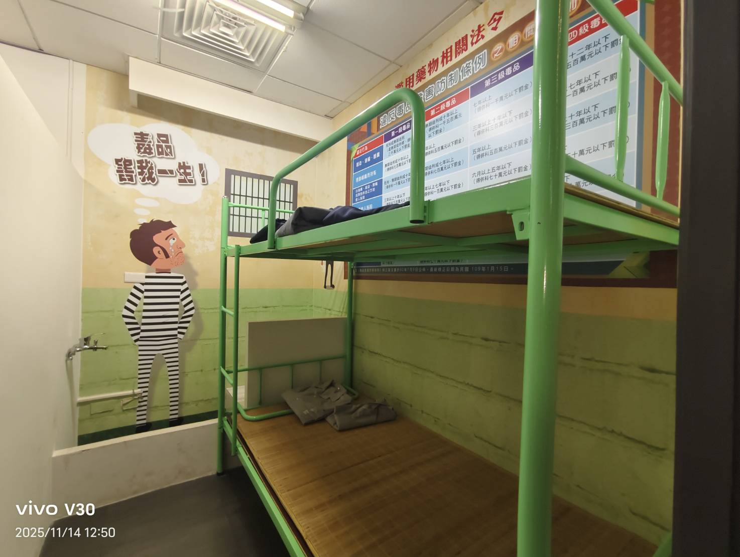 離開矯正機構後,繼續前往中正大學的防制藥物濫用中心。該中心特別設計了擬真教室與情境模擬:夜店與酒店場景、監所羈押情境,一切宛如真實場景重現。專業講師演示各類毒品樣品,從造型、成分到辨別方式逐一介紹。在沉浸式模擬中,志工與團員被邀請進入夜店誘導場景,體驗青年可能面臨的誘發壓力與誘惑;接著則進入模擬羈押環境,深入理解毒癮最終可能帶來的法律與人身後果。這樣強化式的教育,不僅提高志工識毒能力,也使反毒宣導不再是冷冰冰的知識,而是真實關乎生命抉擇與價值承擔的教育。
