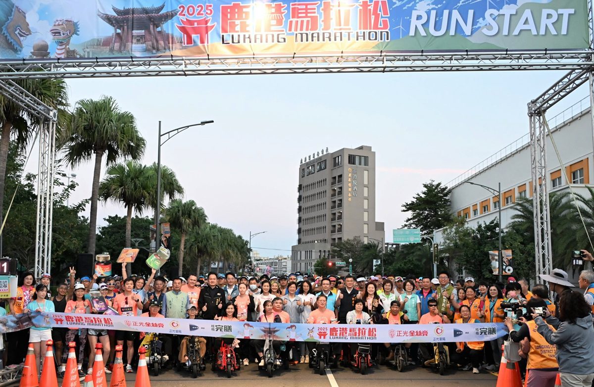 「2025鹿港馬拉松」,今日上午於鹿港體育場熱鬧登場!今年活動吸引近3,800位跑友齊聚古城,用腳步感受鹿港的歷史風華與人情味。縣長王惠美與彰化縣二鹿慢跑協會理事長陳西江、總幹事陳信仲、鎮長許志宏及多位立委、議員一同為賽事鳴槍起跑,現場氣氛熱烈,展現全民參與運動的熱情與活力。