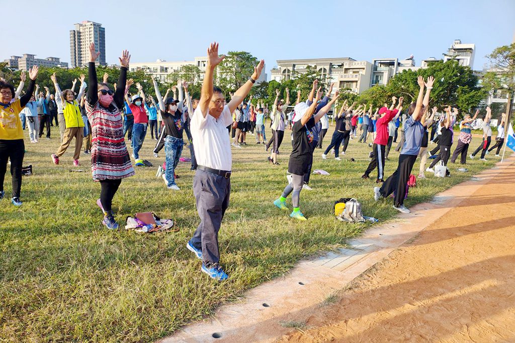 健走活動在安平國中及運河旁熱烈展開,院內員工、志工及家屬,還有失智友善人士藉運動活絡筋骨,並趁機聯誼、以增進彼此的情誼,報到後,由總裁郭宗正、鄭雅敏與到場的衛生局主秘陳淑娟、安平國中校長陳柏蒼及民意代表等貴賓領銜下,和黃偉哲市長共同宣導拒絕菸、酒、檳榔後,所有參加者,在復健治療師王靜玉帶領下先做健康操暖身。