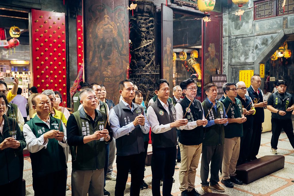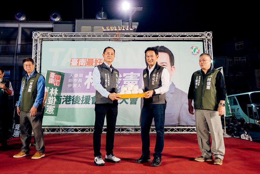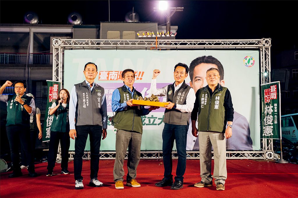 ▲林俊憲16日下午在西港慶安宮舉辦「西港後援會成立大會」。