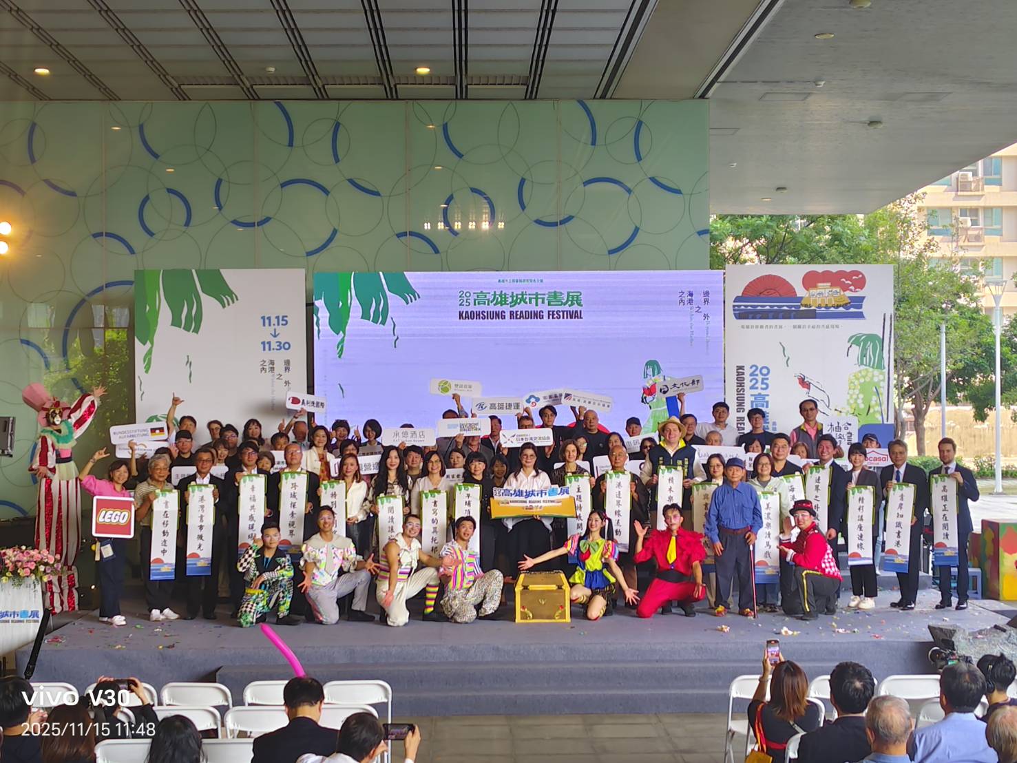 【記者 周志杰 /高雄報導】「2025 高雄城市書展」日前於 11 /15 (六)正式在 高雄市立圖書館總館揭幕,一場融合書籍、藝術、創作與城市風景的文化盛會正式啟航。當日由 FOCASA馬戲團以動感特技為現場開場炒熱氣氛,接著在 文化部次長 李靜慧、高雄市文化局長 王文翠、館長 李金鴦與出版、藝文代表共同以「信物寶盒」儀式為序,象徵閱讀啟航。主題涵蓋「港灣書市」、七大特展、百場講座以及跨域演出,呼應「移動閱讀」的概念,標誌高雄閱讀文化邁入新局。