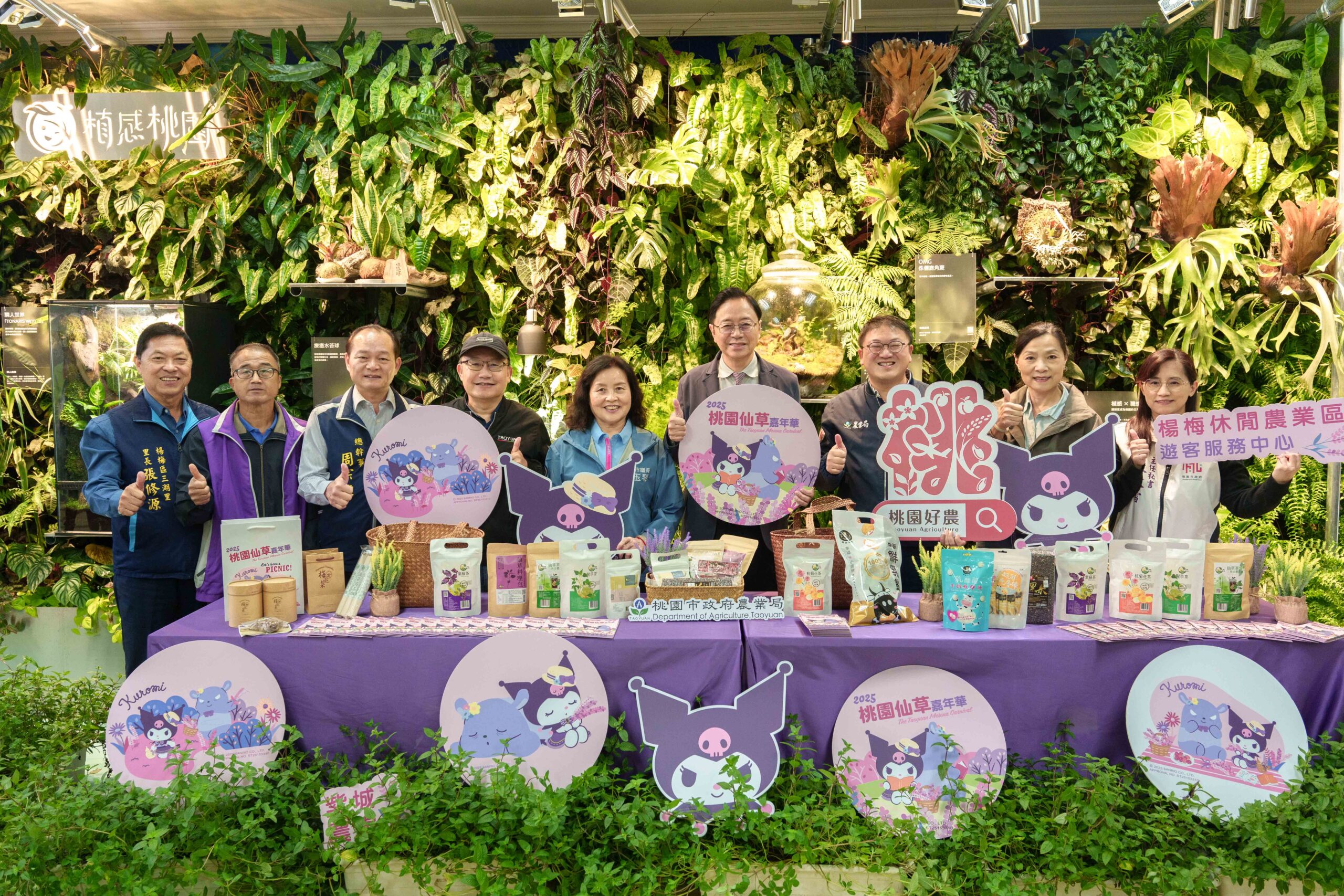 桃園市長張善政表示,仙草嘉年華今年從11月22日起,一連16天在楊梅登場,展區結合2公頃仙草花與2.1公頃波斯菊花田,並邀請人氣明星酷洛米(Kuromi)擔任花之使者,帶領民眾走入夢幻的紫色仙境,以「花田 × 文化 × 可愛IP」呈現桃園冬季最浪漫的節慶風景。今年更首度整合3大節慶資源,包括桃園仙草嘉年華、富岡鐵道藝術生活節,以及畜產嘉年華,以農業、鐵道、藝術三條軸線串聯,從富岡火車站一路延伸至楊梅花田,形成冬季觀光廊帶,帶動桃園南區觀光與地方產業升級。