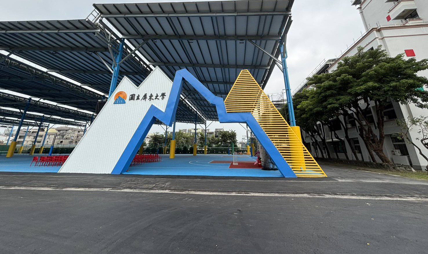 【記者范家豪/屏東報導】 寶島陽光再生能源集團旗下玉衡能源,具各級校園光電設備實績,近期更邁向新里程碑:攜手國立屏東大學合作建置大專院校級最大太陽光電球場。球場兼具實用與設計,整體建築線條以大武山綿延山脈為意象,同時為校園打造安全舒適的運動空間,更以總容量1,322 kWp、年發電量約158萬度、每年減碳748公噸,約4座大安森林公園年吸碳量的卓越效能,成為全國大專校院發電總容量第一的太陽光電風雨球場。