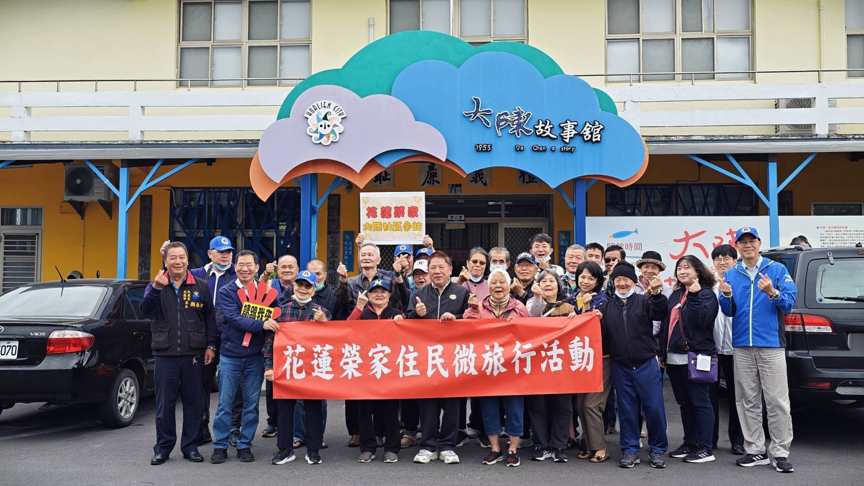 花蓮榮家住民長輩由家主任游文勇引領,前往大陳社區文化觀摩,民意里里長顏春有熱情接待,長輩們親手搓揉年糕,其樂融融;透過社區走讀與體驗,深入了解大陳移民文化與在地的人情故事。