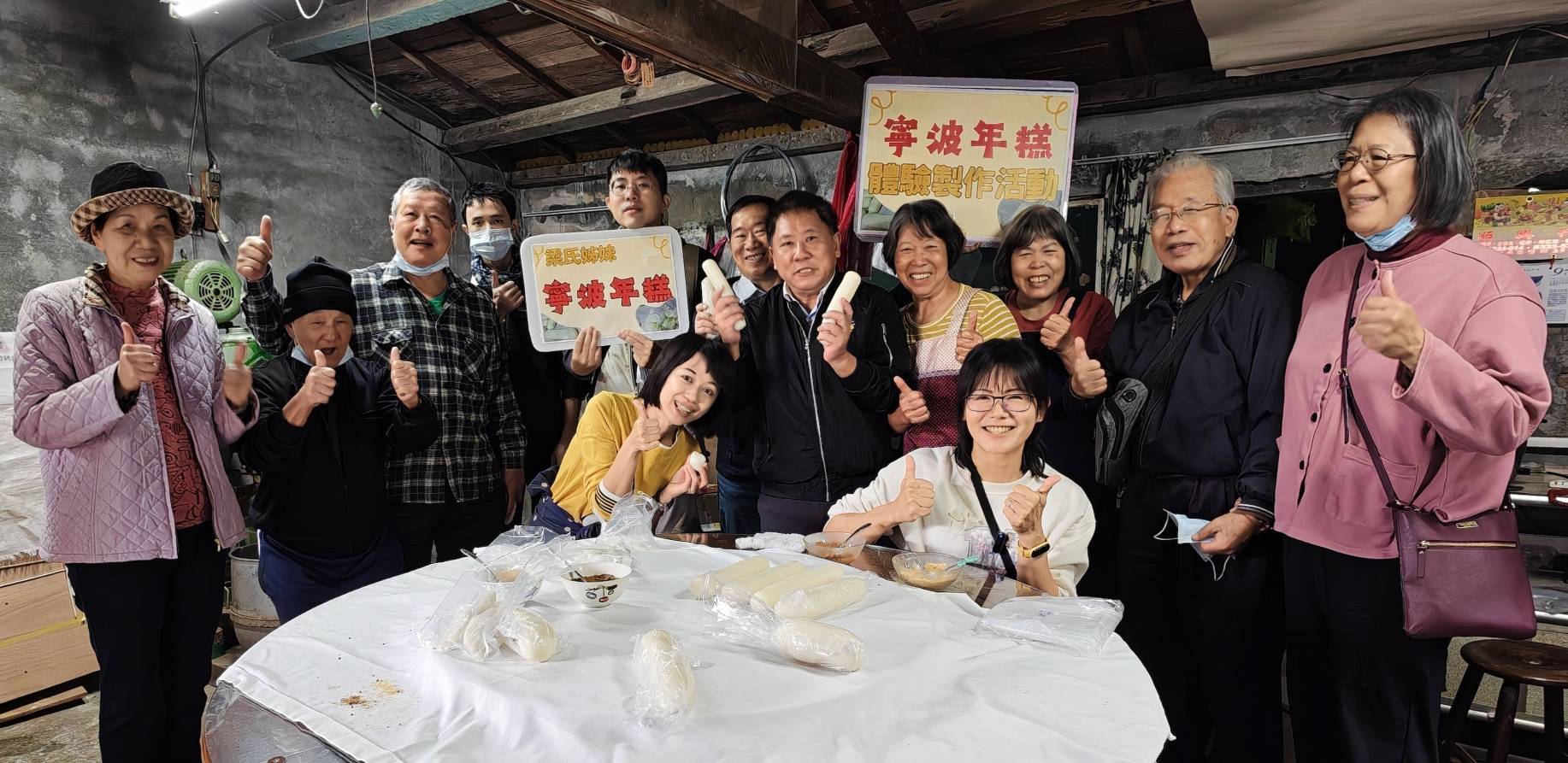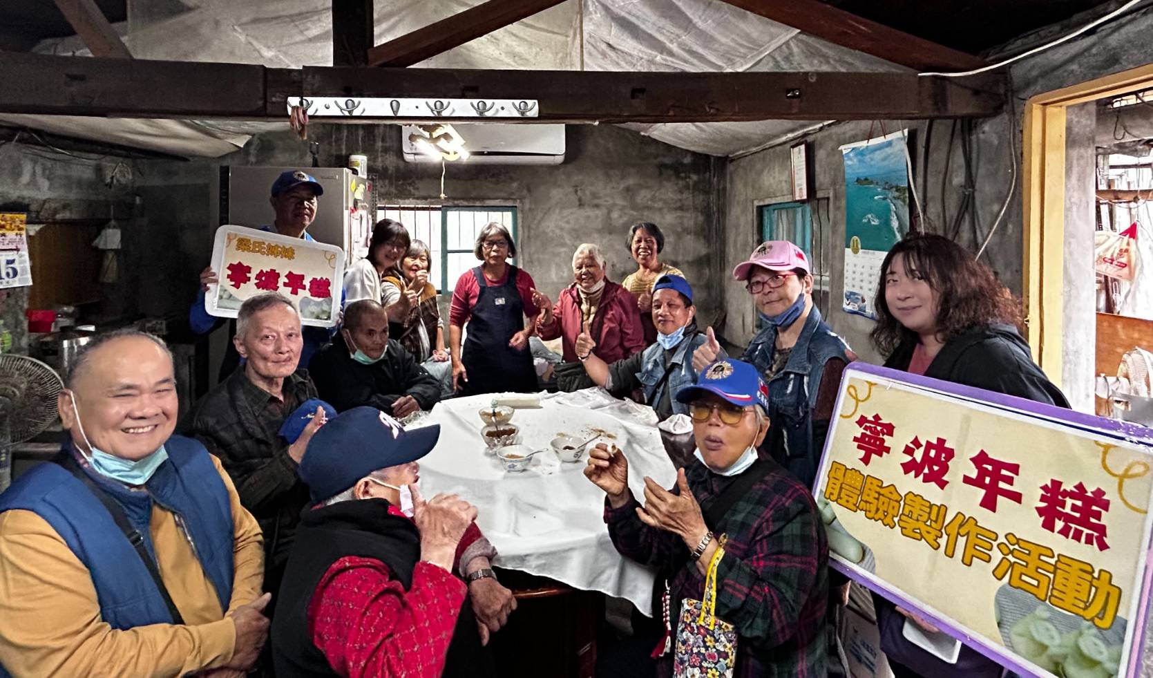 ▲榮家長輩親手體驗年糕製作、開心品嚐。