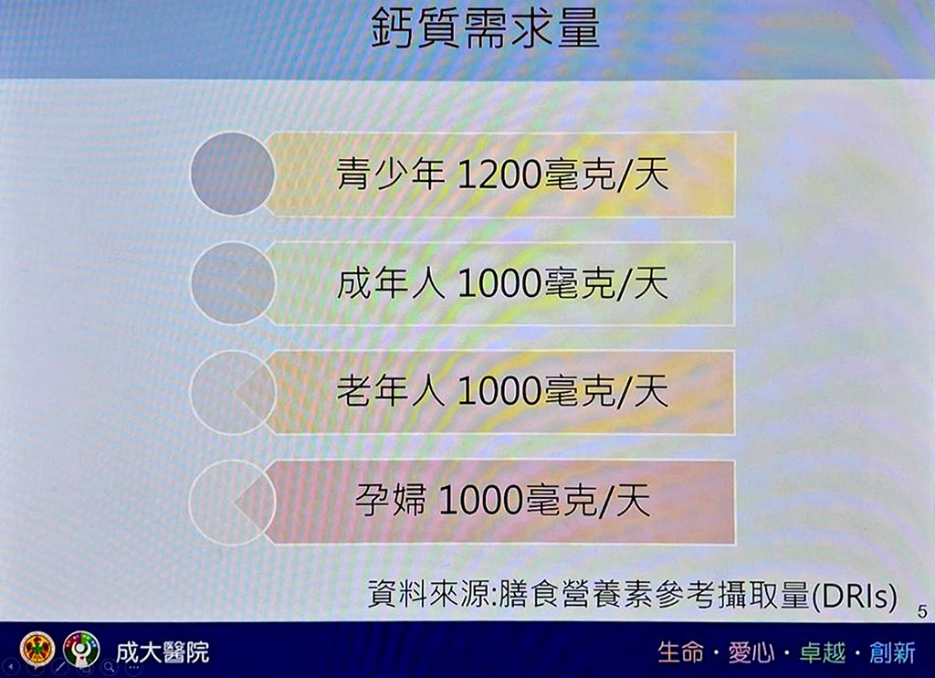 【記者吳玉惠/臺南報導】 國民健康署國民營養健康狀況調查(106-109年)顯示,國人鈣質攝取普遍不足,僅1-3歲族群達到建議量,其他年齡層攝取量約為需要量一半。綜觀歷年調查結果,鈣質是國人攝取嚴重不足的必需營養素之一。