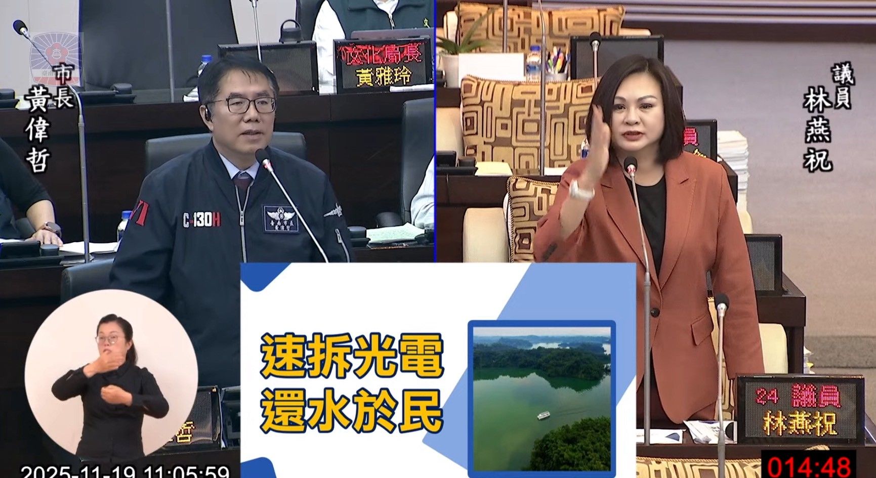 林燕祝指出,一張清洗烏山頭水庫光電板照片,點燃台南人的怒火,鄉親不解民進黨執政為何罔顧民意,強行在烏山頭水庫設置光電板,台南市議會國民黨團在108年12月3日,還特別召開記者會堅決反對烏山頭水庫設立光電板汙染民生用水,沒想到星曄綠能公司在109年1月22日,宣布將成立籌備處計畫在烏山頭水庫設光電板,台南市政府在民進黨中央壓力下,居然短短12天,就核准!綠色執政效率保證。