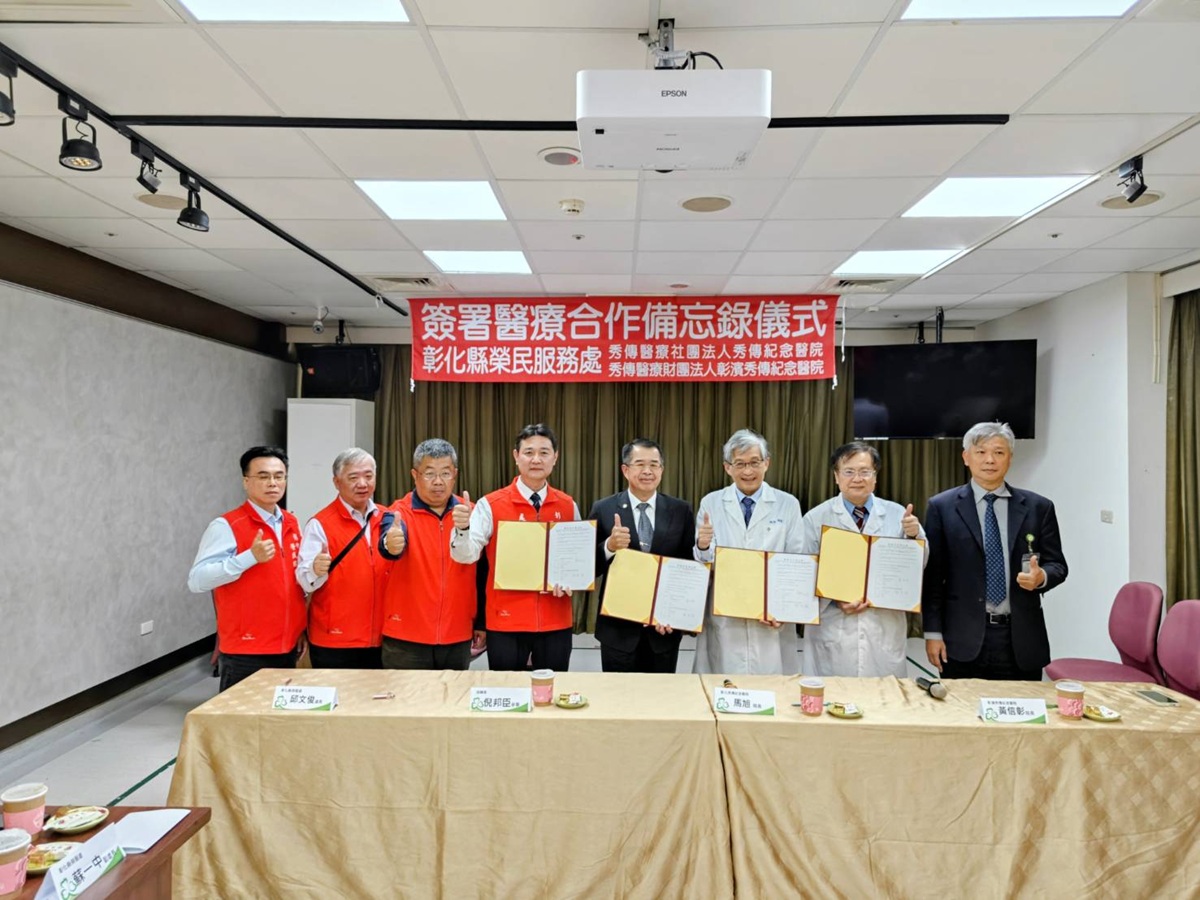 為強化退除役官兵醫療服務、提升就醫便利性,彰化縣榮民服務處與彰濱秀傳紀念醫院及彰化秀傳紀念醫院正式簽署合作備忘錄。依據合作內容,榮民、遺眷家戶代表以及輔導期限內二類退除役官兵至該二醫院就醫時,只需出示正式有效證件即可享有免掛號費優惠,且彰濱秀傳醫院更提供經濟弱勢榮民醫療補助。光是彰化地區受惠者即超過一萬人,此舉有效減輕退除役官兵就醫負擔,且提升醫療便利性。