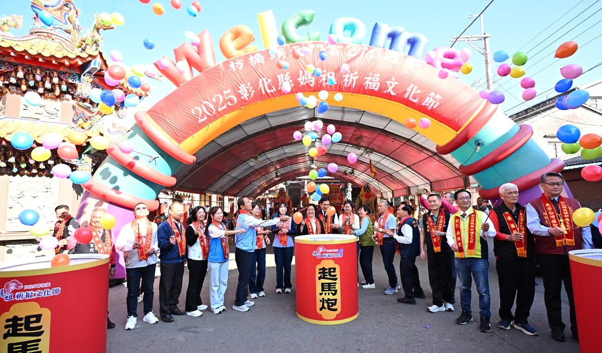 「2025彰化縣媽祖祈福文化節」於今(22)日舉行13間宮廟聯合遶境活動,熱鬧非凡,由爐主天門宮集結田中乾德宮、北斗奠安宮、埤頭合興宮、二林仁和宮、芳苑普天宮、王功福海宮、鹿港台灣護聖宮、伸港福安宮、彰化南瑤宮、芬園寶藏寺、員林福寧宮及溪湖福安宮等宮廟共同參與。彰化縣長王惠美、天門宮主委劉清尊及各宮廟主委一早出席在社頭枋橋頭天門宮舉行的起駕典禮,現場湧入大批信眾與遊客,共同參與這場年度宗教盛事。隨著起馬炮鳴放,浩浩蕩蕩的隊伍正式起駕,沿途民眾爭相膜拜祈福,社頭街區擠滿人潮,充分展現媽祖信仰的凝聚力量。